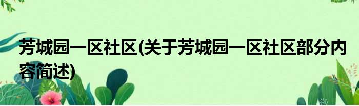 芳城园一区社区(关于芳城园一区社区部分内容简述)