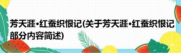 芳天涯·红蚕织恨记(关于芳天涯·红蚕织恨记部分内容简述)