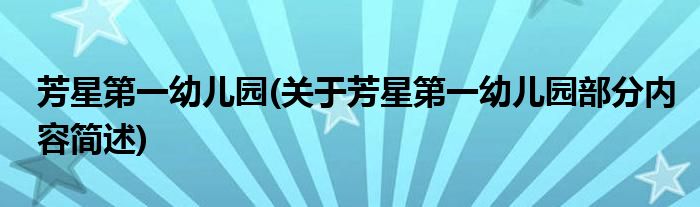 芳星第一幼儿园(关于芳星第一幼儿园部分内容简述)