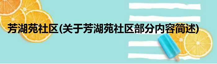 芳湖苑社区(关于芳湖苑社区部分内容简述)