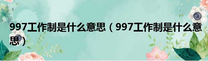 997工作制是什么意思(997工作制是什么意思)
