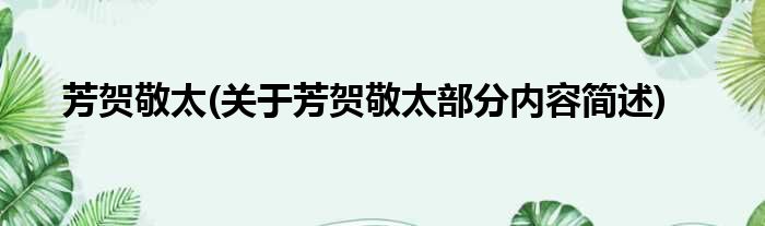 导读 大家好,今天小方来说说一篇关于芳贺敬太,关于芳贺敬太部分内容简述的文章,那么现在就为大家来简单介绍下,希望对各位小伙伴们有所帮助。