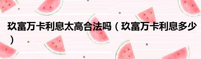 玖富万卡利息太高合法吗(玖富万卡利息多少)