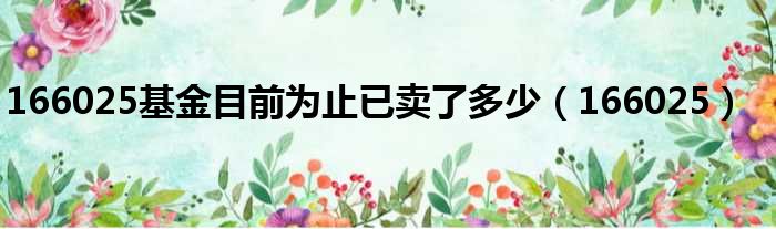 大家好,小活来为大家解答以上的问题。166025基金目前为止已卖了多少,166025这个很多人还不知道,现在让我们一起来看看吧!