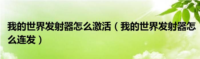 我的世界发射器怎么激活(我的世界发射器怎么连发)