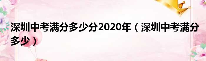 深圳中考满分多少分2020年(深圳中考满分多少)