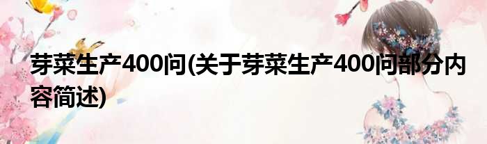 芽菜生产400问(关于芽菜生产400问部分内容简述)