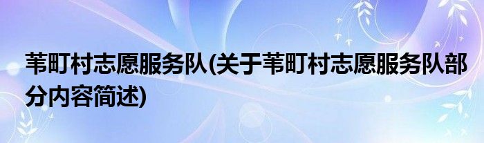苇町村志愿服务队(关于苇町村志愿服务队部分内容简述)