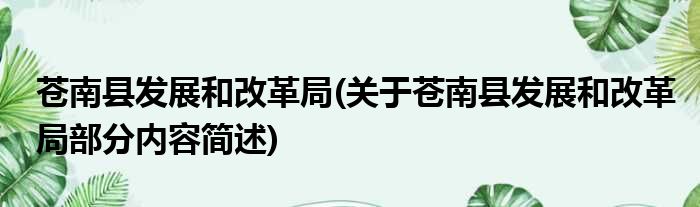 导读 大家好,今天小方来说说一篇关于苍南县发展和改革局,关于苍南县发展和改革局部分内容简述的文章,那么现在就为大家来简单介绍下,希望对各