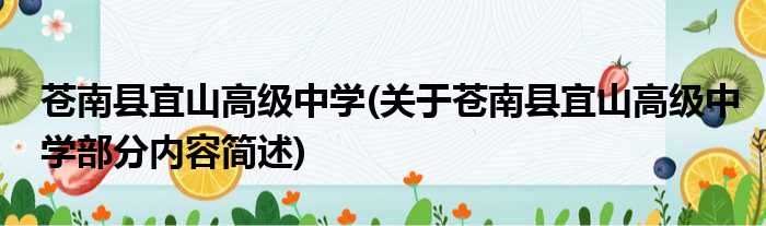 苍南县宜山高级中学(关于苍南县宜山高级中学部分内容简述)