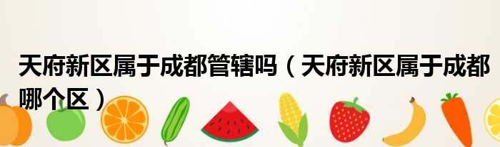 天府新区属于成都管辖吗(天府新区属于成都哪个区)