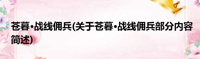 苍暮·战线佣兵(关于苍暮·战线佣兵部分内容简述)