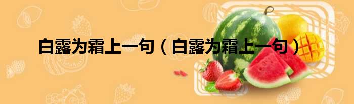 大家好,小活来为大家解答以上的问题。白露为霜上一句,白露为霜上一句这个很多人还不知道,现在让我们一起来看看吧!