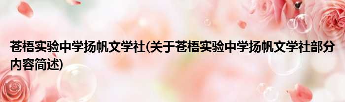 苍梧实验中学扬帆文学社(关于苍梧实验中学扬帆文学社部分内容简述)
