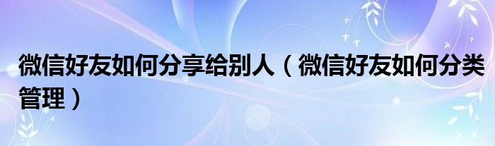 导读 大家好,小活来为大家解答以上的问题。微信好友如何分享给别人,微信好友如何分类管理这个很多人还不知道,现在让我们一起来看看吧!1、微信