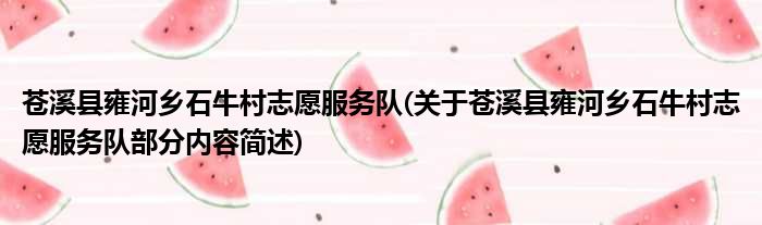 苍溪县雍河乡石牛村志愿服务队(关于苍溪县雍河乡石牛村志愿服务队部分内容简述)