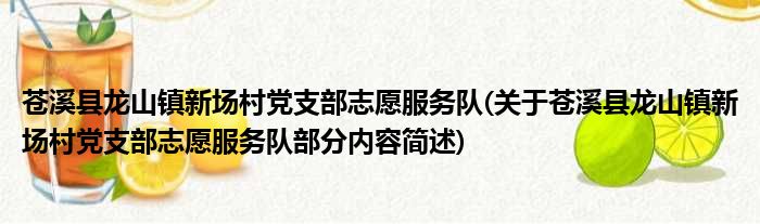 苍溪县龙山镇新场村党支部志愿服务队(关于苍溪县龙山镇新场村党支部志愿服务队部分内容简述)