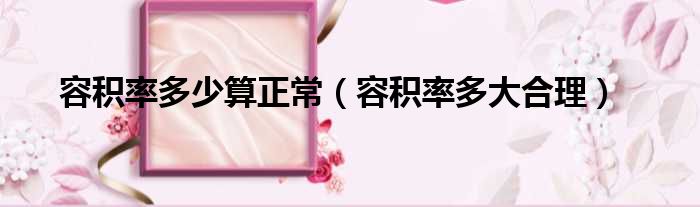 大家好,小活来为大家解答以上的问题。容积率多少算正常,容积率多大合理这个很多人还不知道,现在让我们一起来看看吧!