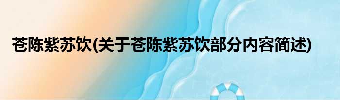 苍陈紫苏饮(关于苍陈紫苏饮部分内容简述)