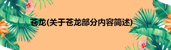 导读 大家好,今天小方来说说一篇关于苍龙,关于苍龙部分内容简述的文章,那么现在就为大家来简单介绍下,希望对各位小伙伴们有所帮助。