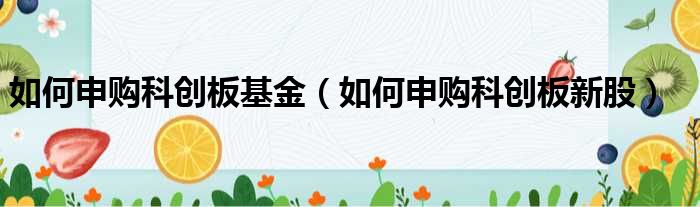如何申购科创板基金(如何申购科创板新股)