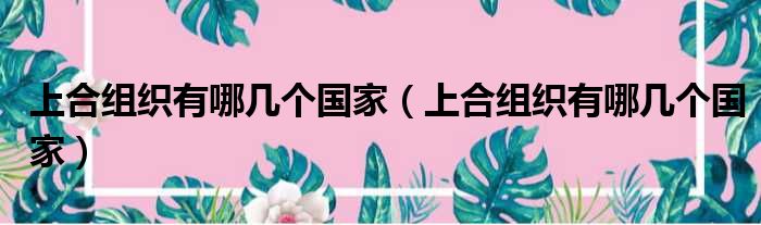 导读 大家好,小活来为大家解答以上的问题。上合组织有哪几个国家,上合组织有哪几个国家这个很多人还不知道,现在让我们一起来看看吧!1、上海合