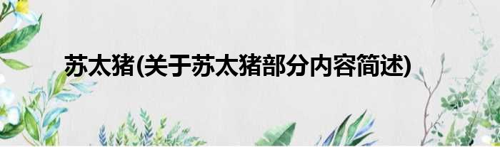 导读 大家好,今天小方来说说一篇关于苏太猪,关于苏太猪部分内容简述的文章,那么现在就为大家来简单介绍下,希望对各位小伙伴们有所帮助。