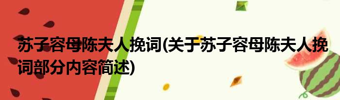 苏子容母陈夫人挽词(关于苏子容母陈夫人挽词部分内容简述)