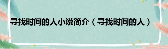 大家好,小活来为大家解答以上的问题。寻找时间的人小说简介,寻找时间的人这个很多人还不知道,现在让我们一起来看看吧!