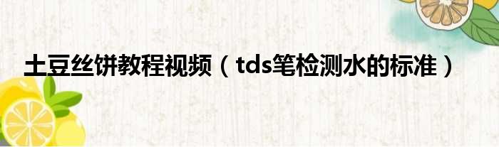大家好,小活来为大家解答以上的问题。土豆丝饼教程视频,tds笔检测水的标准这个很多人还不知道,现在让我们一起来看看吧!