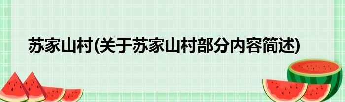 导读 大家好,今天小方来说说一篇关于苏家山村,关于苏家山村部分内容简述的文章,那么现在就为大家来简单介绍下,希望对各位小伙伴们有所帮助。