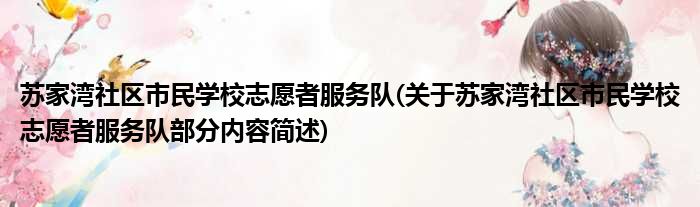 苏家湾社区市民学校志愿者服务队(关于苏家湾社区市民学校志愿者服务队部分内容简述)