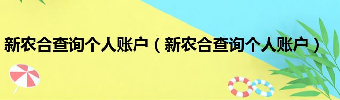 导读 大家好,小活来为大家解答以上的问题。新农合查询个人账户,新农合查询个人账户这个很多人还不知道,现在让我们一起来看看吧!1、新农保个人