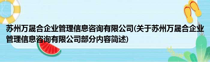 苏州万晟合企业管理信息咨询有限公司(关于苏州万晟合企业管理信息咨询有限公司部分内容简述)
