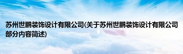 苏州世鹏装饰设计有限公司(关于苏州世鹏装饰设计有限公司部分内容简述)