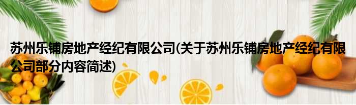 苏州乐铺房地产经纪有限公司(关于苏州乐铺房地产经纪有限公司部分内容简述)