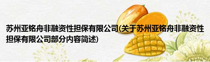 苏州亚铭舟非融资性担保有限公司(关于苏州亚铭舟非融资性担保有限公司部分内容简述)