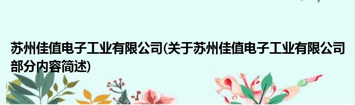 苏州佳值电子工业有限公司(关于苏州佳值电子工业有限公司部分内容简述)