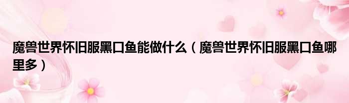 魔兽世界怀旧服黑口鱼能做什么(魔兽世界怀旧服黑口鱼哪里多)