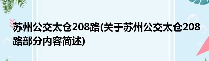 苏州公交太仓208路(关于苏州公交太仓208路部分内容简述)