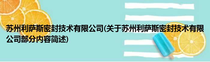 苏州利萨斯密封技术有限公司(关于苏州利萨斯密封技术有限公司部分内容简述)