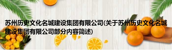 苏州历史文化名城建设集团有限公司(关于苏州历史文化名城建设集团有限公司部分内容简述)