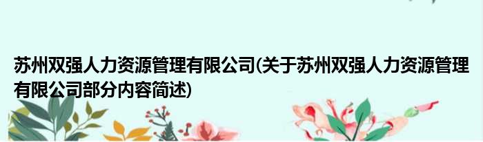 苏州双强人力资源管理有限公司(关于苏州双强人力资源管理有限公司部分内容简述)