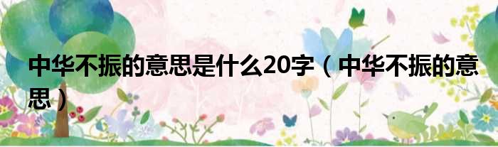 导读 大家好,小活来为大家解答以上的问题。中华不振的意思是什么20字,中华不振的意思这个很多人还不知道,现在让我们一起来看看吧!1、中华不振
