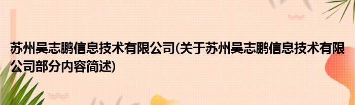 苏州吴志鹏信息技术有限公司(关于苏州吴志鹏信息技术有限公司部分内容简述)
