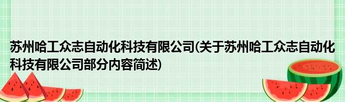 苏州哈工众志自动化科技有限公司(关于苏州哈工众志自动化科技有限公司部分内容简述)
