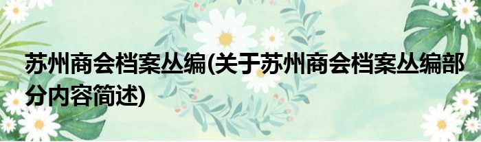导读 大家好,今天小方来说说一篇关于苏州商会档案丛编,关于苏州商会档案丛编部分内容简述的文章,那么现在就为大家来简单介绍下,希望对各位小