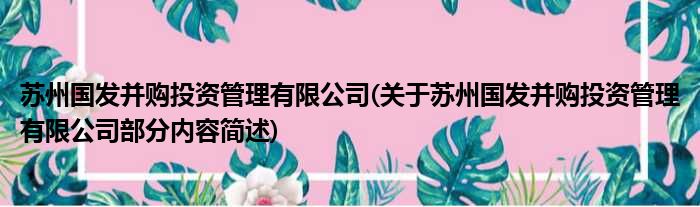 苏州国发并购投资管理有限公司(关于苏州国发并购投资管理有限公司部分内容简述)