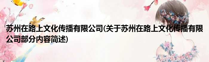 苏州在路上文化传播有限公司(关于苏州在路上文化传播有限公司部分内容简述)