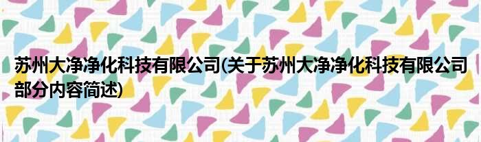 苏州大净净化科技有限公司(关于苏州大净净化科技有限公司部分内容简述)